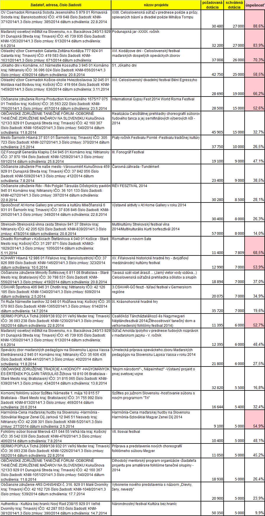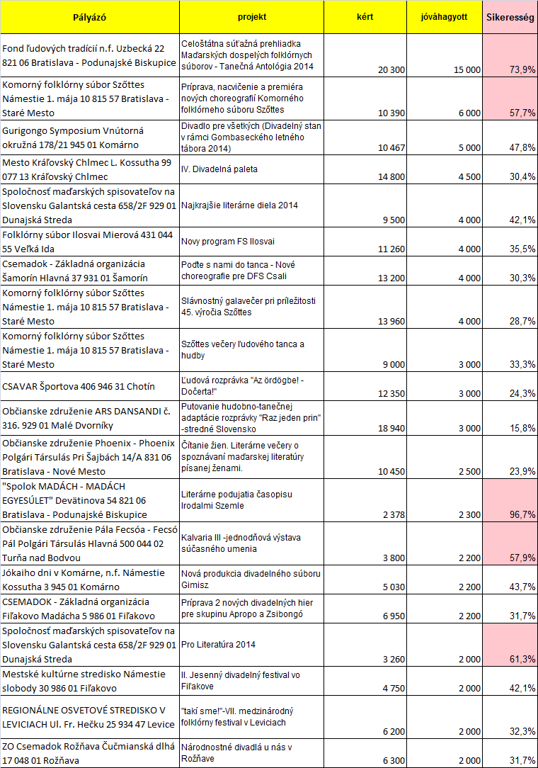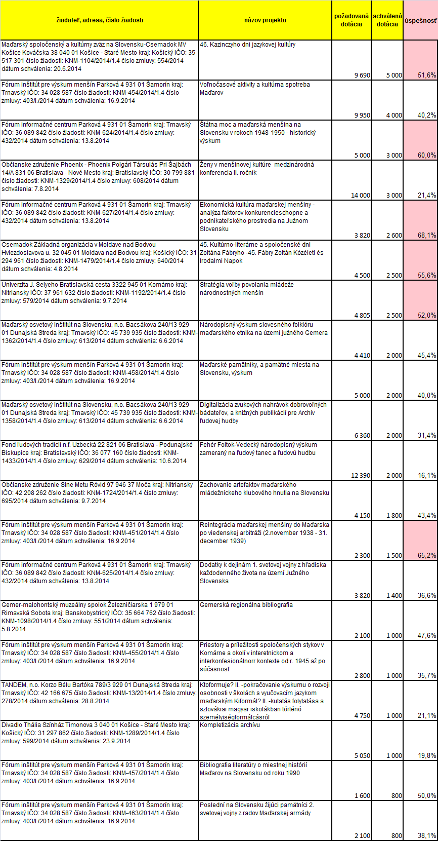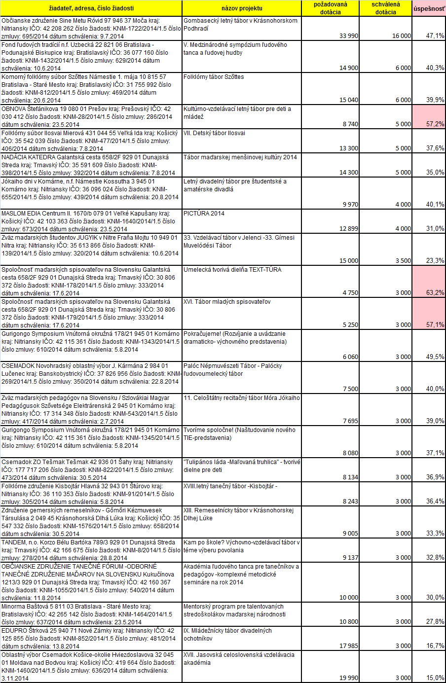 Ez a tanulmány csak azokkal a pályázókkal foglalkozik, akik a Szlovák Köztársaság Kormányhivatalához nyújtottak be pályázatot a 2014-es évben. Ha megjelennek a 2015-ös eredmények az interneten, szándékunkban áll az idei pályázatokat is szemügyre venni.