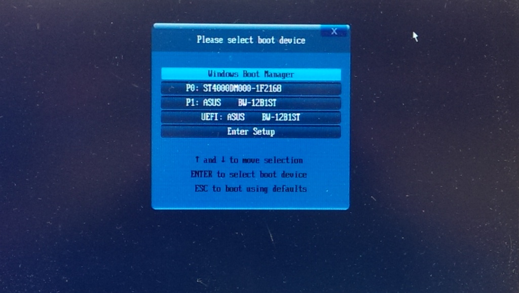 Select boot media from the menu. |