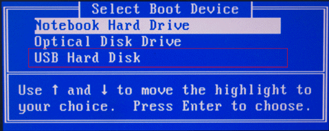 Select „USB Storage Device” from boot menu. |