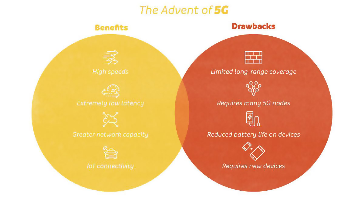 A rádióhullámoknál ugyanis minél magasabb a frekvencia, annál több adatot lehet átvinni a rendszeren. Ezért jobb minőségű az FM rádióadás, mint a rövidhullámú… a DAB+-ról nem is beszélve. Sajnos minél jobban növeljük a frekvenciát, annál rövidebb lesz a hatótávolság. A rövidebb hullámhossz rossz tulajdonsága ugyanis az egyre egyenesebb vonalú terjedés. Amíg a rádiózás hőskorában a tengeri hajók nagy teljesítményű hosszúhullámú rádióadásokkal tudtak kapcsolatot teremteni több ezer kilométeres távolságokra, a mai 5G tornyok csak pár száz méteres körben hatékonyak. Ez így azt jeleni, hogy több mobil alállomásra van szükség. A városokban, ahol a magas épületek akadályozzák a terjedést ott még több mobiltoronyra van szükség.